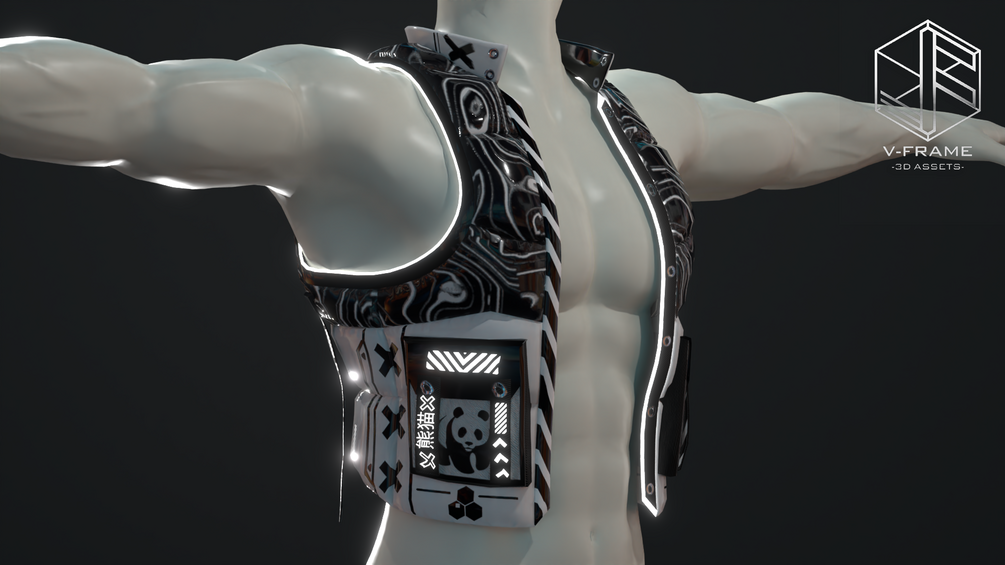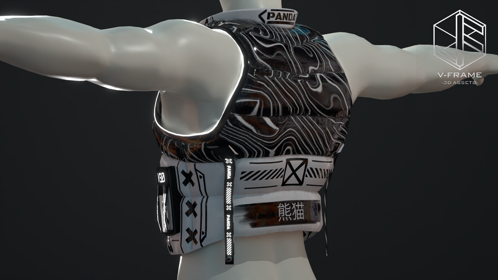 A puffer tank top jacket from the revamped Panda Boi Model, Custom substance smart material for a unique style and fresh look into VRChat. The design is less tech and more street wear to fit well onto anymore model male or female. PANDA PANDA PANDA SKRRRRRRAAAH...